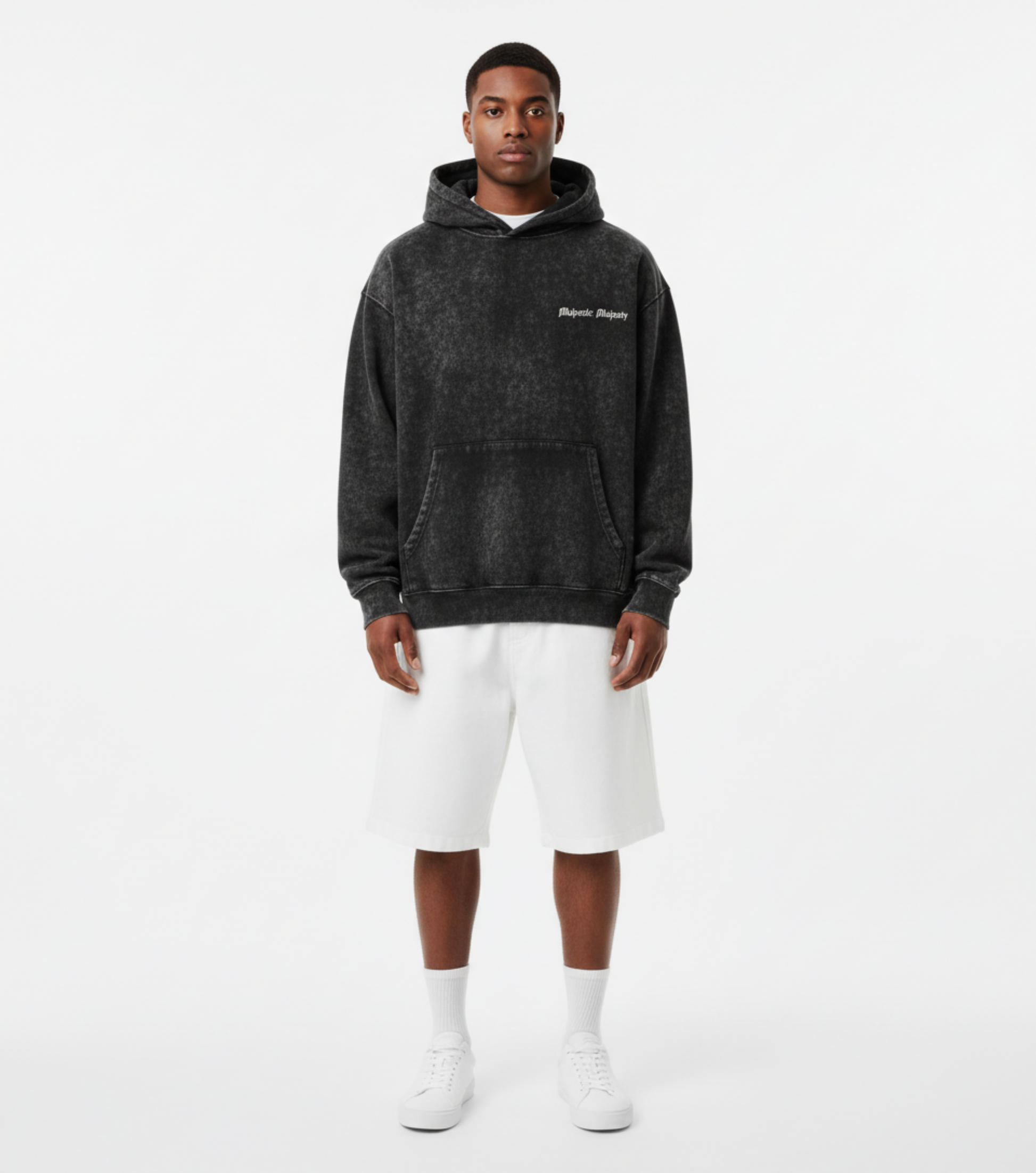 Fabric: 100% cotton with 300 GSM heavyweight coziness and a lived-in acid wash finish.