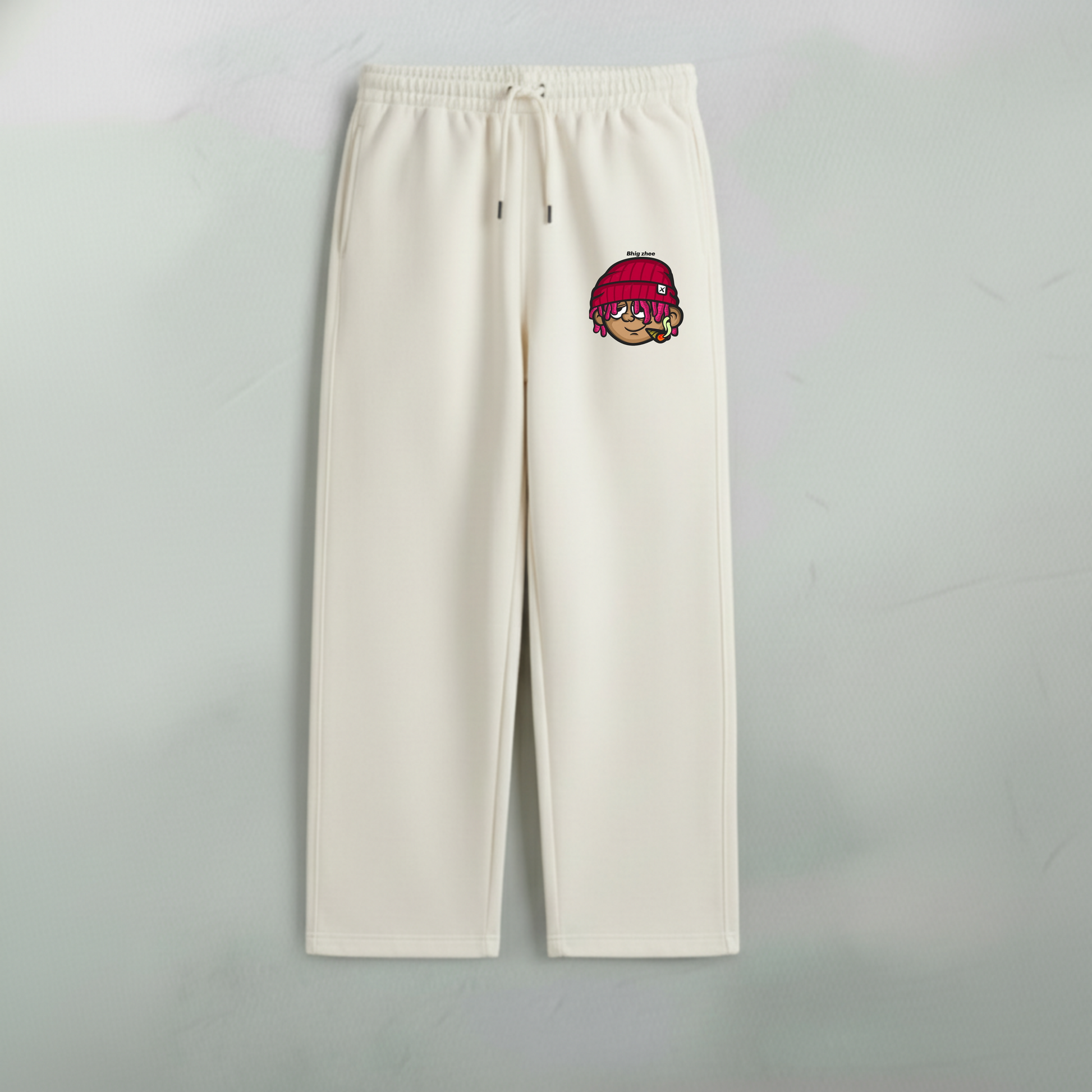 Design: Street Cartoon — featuring a bold embroidered cartoon character patch on the upper thigh that adds a playful twist to minimal aesthetics. Paired with an adjustable drawstring waist and subtle SNUGWEAR branding, these sweatpants strike the balance between casual and cool.
